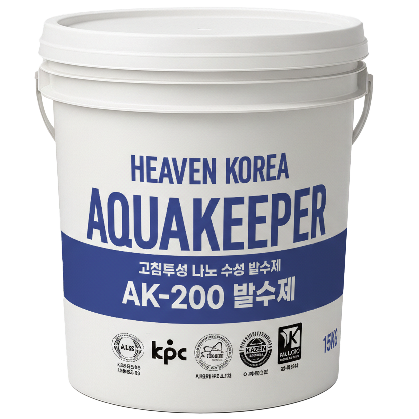수분은 건물 노후화의 주범입니다. AK-200 고침투성 친환경 수성 발수제는 독보적인 기술로 강력한 발수층을 형성해 수분 침투를 원천 차단합니다.