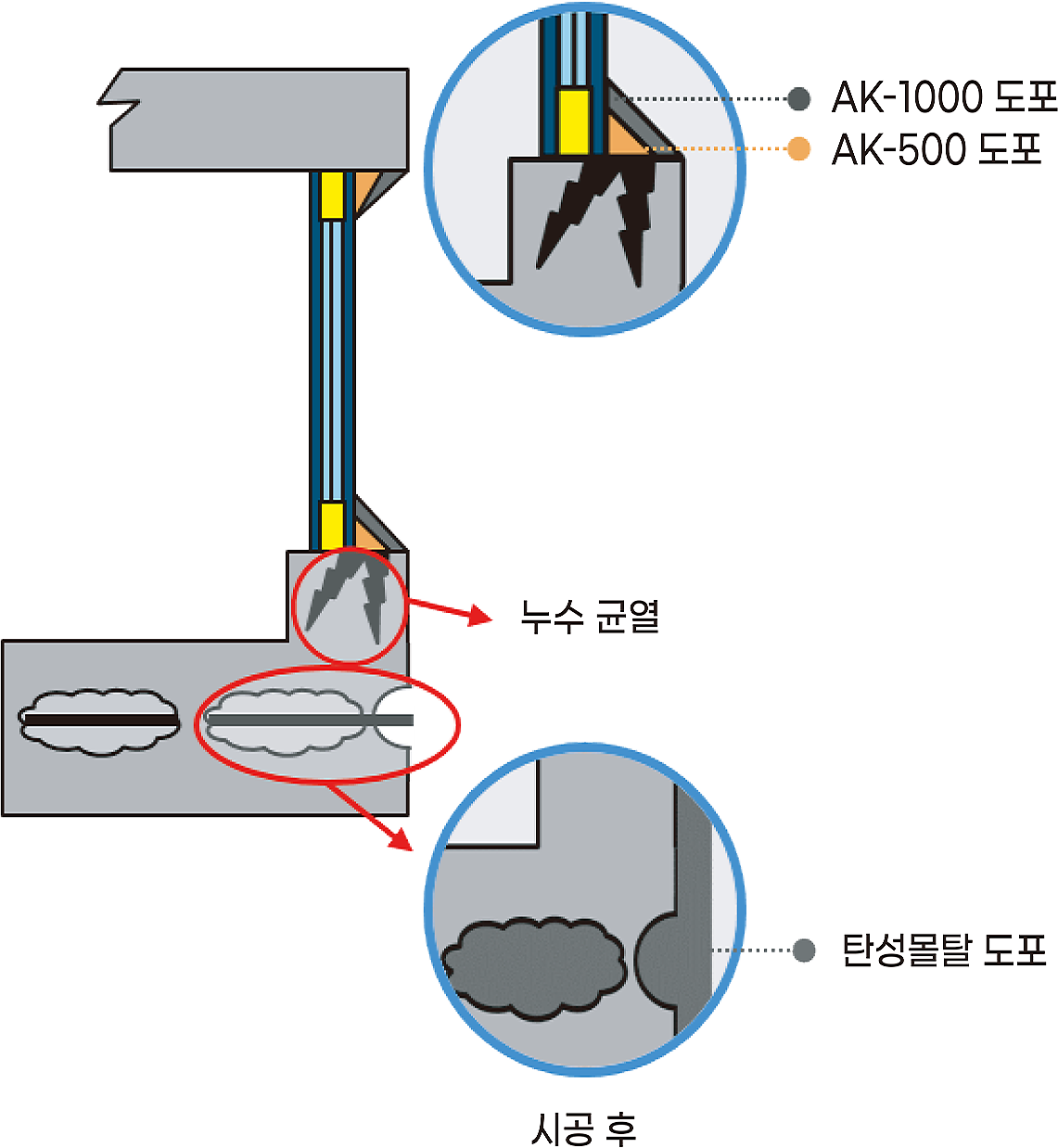 상부면 등 훼손 부위에 AK-500(프라이머)을 도포한다.