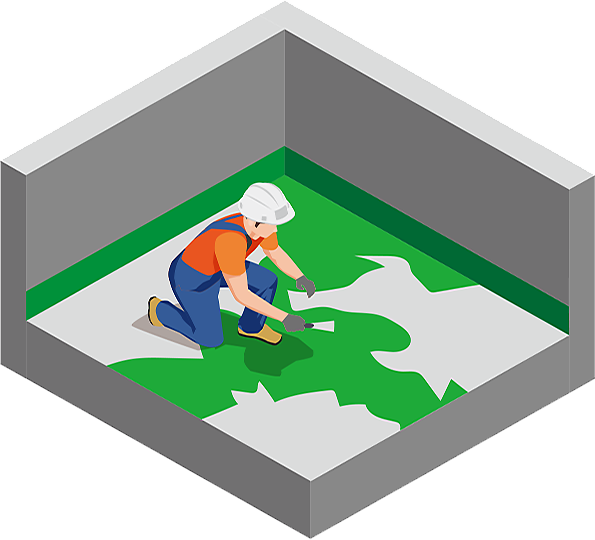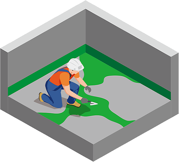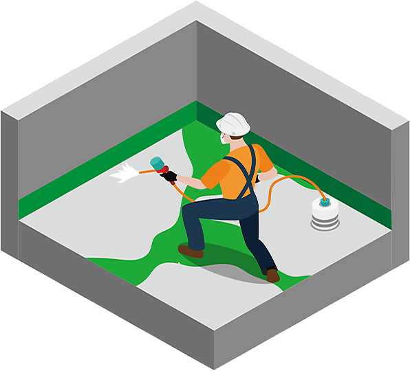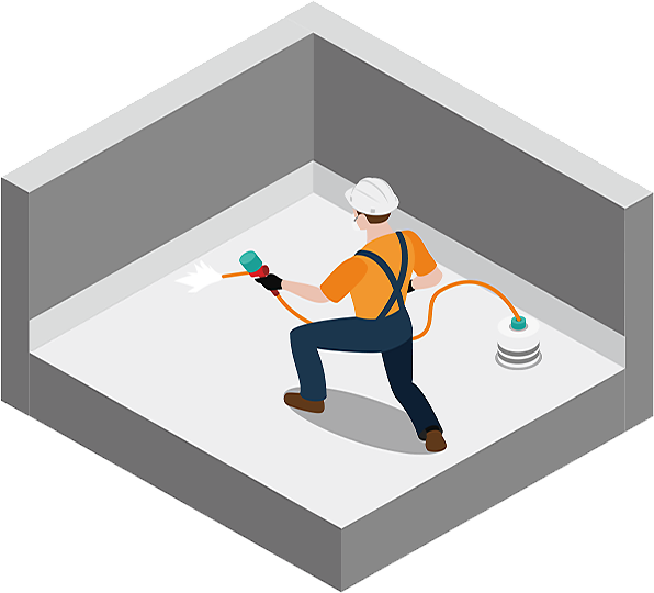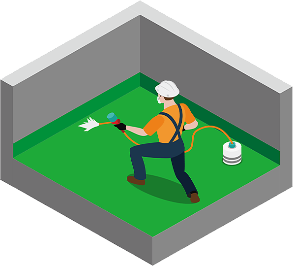 약 3-5mm 정도의 도막 두께로 도포한다.