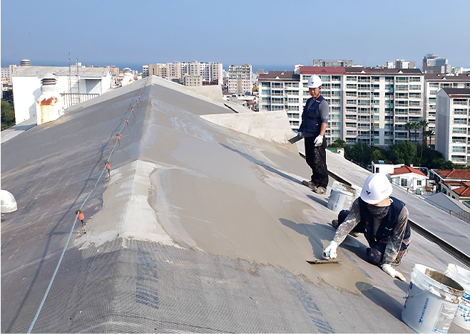 ( AK-1000(A) + 물 ) + 탄성몰탈(또는 수지몰탈)