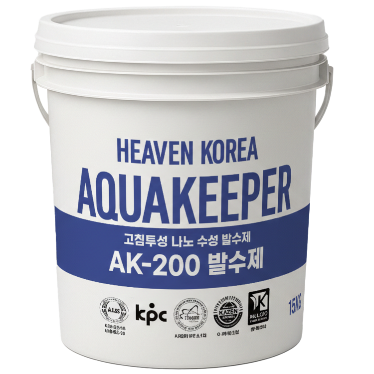 수분은 건물 노후화의 주범입니다. AK-200 고침투성 친환경 수성 발수제는 독보적인 기술로 강력한 발수층을 형성해 수분 침투를 원천 차단합니다.