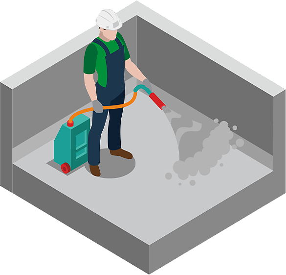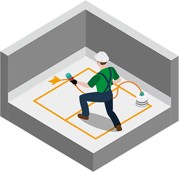 약 3-5mm 정도의 도막 두께로 도포한다.